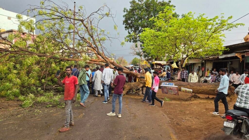 जानकारी के अनुसार, शुक्रवार को मौसम अचानक खराब हो गया और तेज आंधी-तूफान के साथ हवाएं चलने लगी. इसी दौरान धमतरी-नगरी मार्ग पर स्थित कुकरेल बस स्टैंड के पास सड़क किनारे नीम का पेड़ अचानक गिर गया. उसी समय वहां से गुजर रही एक मोटरसाइकिल पेड़ की चपेट में आ गई. पेड़ के गिरते ही आसपास मौजूद लोगों ने तुरंत मौके पर पहुंचकर राहत और बचाव कार्य शुरू किया. ग्रामीणों और व्यापारियों ने मिलकर मोटरसाइकिल सवार दोनों युवकों को पेड़ के नीचे से सुरक्षित बाहर निकाला. हादसे में दोनों को हल्की चोटें आईं, जिन्हें प्राथमिक उपचार दिया गया. गनीमत रही कि कोई गंभीर जनहानि नहीं हुई.