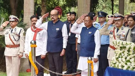 रायपुर/बीजापुर:- प्रदेश भर में आज पुलिस स्मृति दिवस परेड का आयोजन किया गया है. रायपुर के माना में राज्यपाल रमेन डेका, मुख्यमंत्री विष्णुदेव साय और गृहमंत्री विजय शर्मा ने वीर जवानों को नमन किया. राज्यपाल, सीएम और डिप्टी ने शहीद स्मारक पर पहुंचकर पुष्पचक्र अर्पित कर शहीद जवानों को श्रद्धांजलि दी.