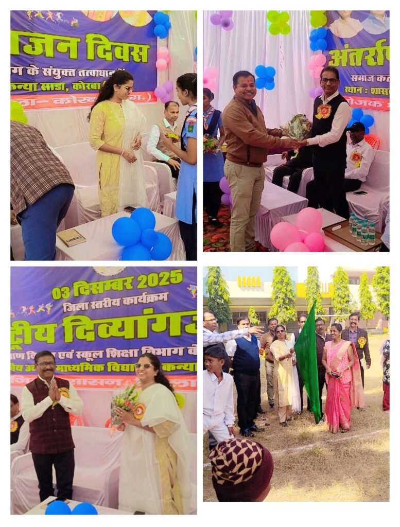 कोरबा :- माननीय प्रधान जिला एवं सत्र न्यायाधीश/अध्यक्ष, जिला विधिक सेवा प्राधिकरण कोरबा के निर्देशानुसार अंतर्राष्ट्रीय दिव्यांग दिवस के अवसर पर जिला विधिक सेवा प्राधिकरण, शिक्षा विभाग, समाज कल्याण और स्वयंसेवी संस्थाओं के संयुक्त तत्वाधान में शासकीय कन्या हायर सेकेण्डरी विद्यालय साडा, जिला कोरबा में विधिक जागरूकता कार्यकम का आयोजन किया गया।
