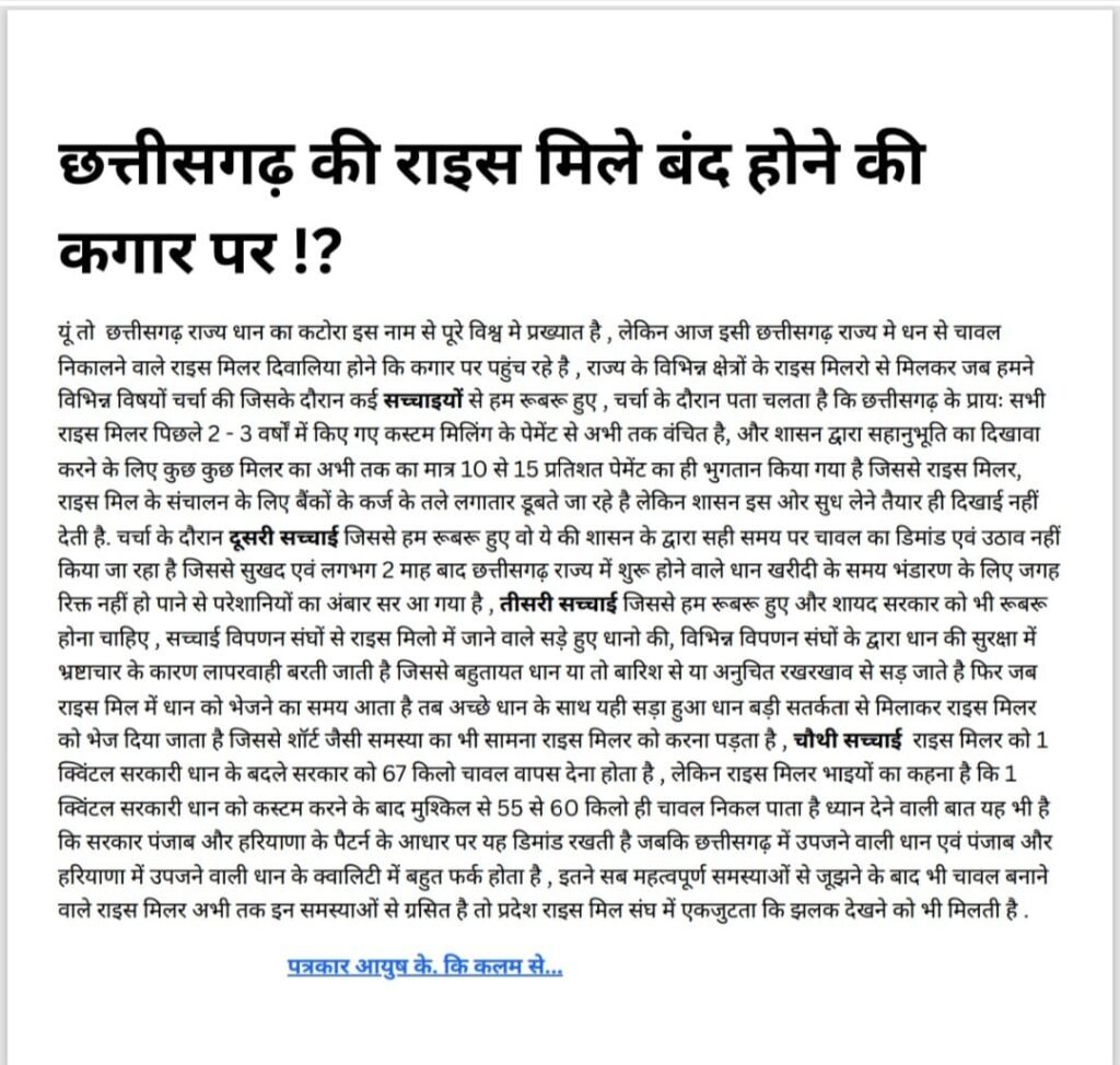 Share Facebook Twitter LinkedIn Pinterest Email Post Views: 100 breaking news Cg news chhattisgarh Hindi Khabar Hindi News Latest Khabar Latest news Raipur Raism Today khabar दबंग राजधानी